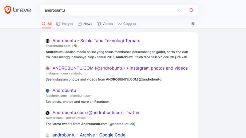 Brave Search adalah salah satu mesin pencari yang dapat Sobat Androbuntu gunakan sebagai alternatif untuk Google, yang dikenal sebagai raksasa teknologi yang mengumpulkan data pengguna, menjualnya kepada pengiklan, dan tidak memperdulikan privasi para penggunanya. Brave Search menempatkan pengguna di urutan pertama diatas profit. Data kamu adalah pilihan kamu.