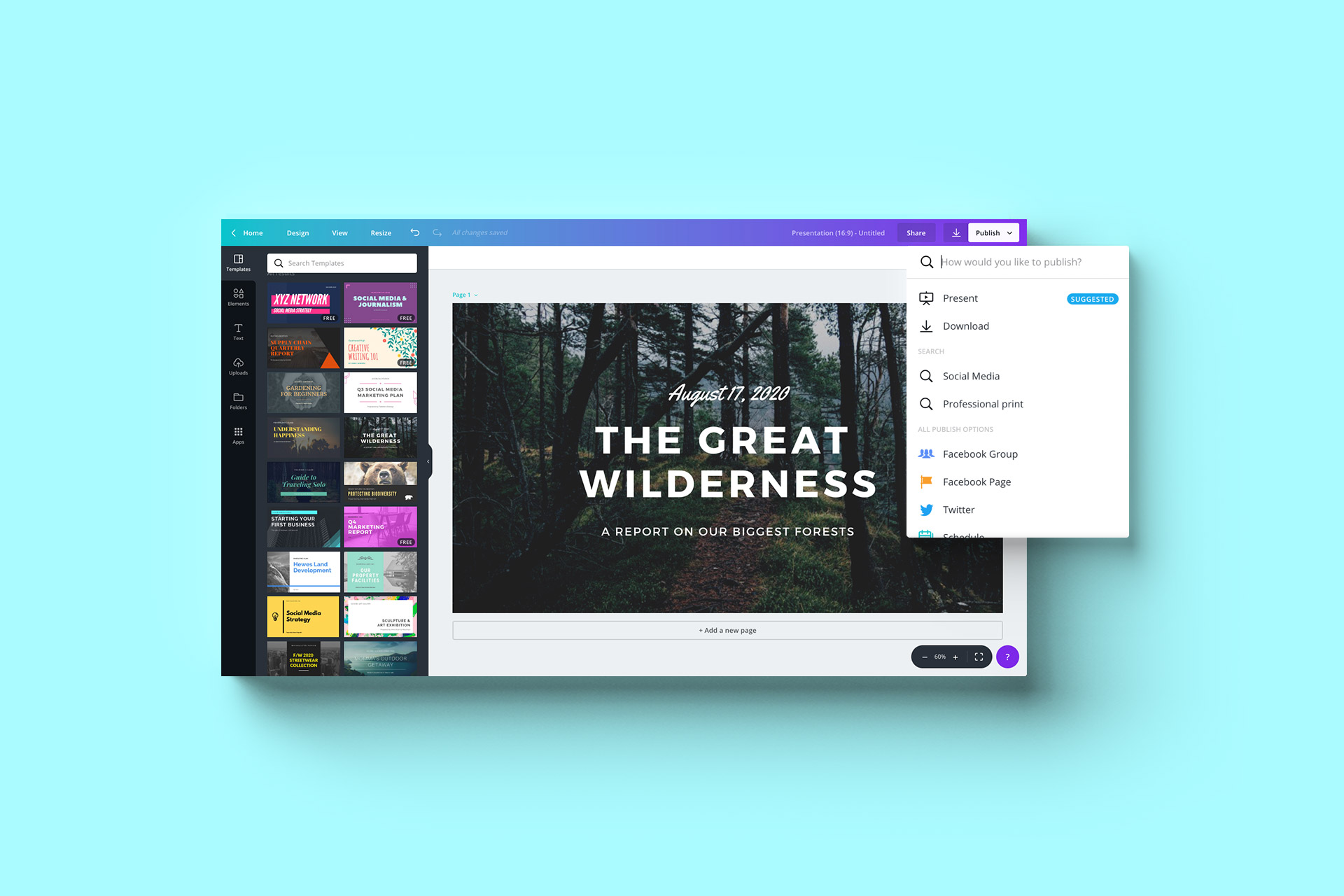 Bahkan tak hanya logo saja yang bisa kamu buat di Canva, kamu juga bisa membuat poster dan halaman untuk presentasi.